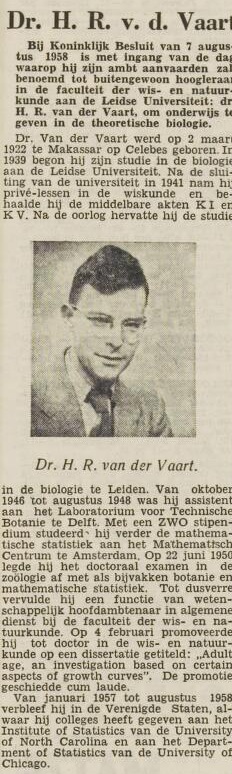details) was hoogleraar Theoretische Biologie september 1958 - dec 1962.